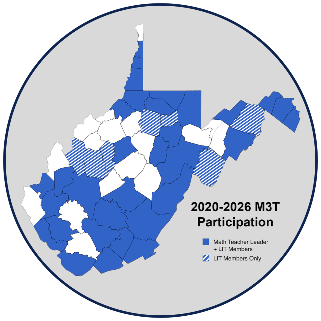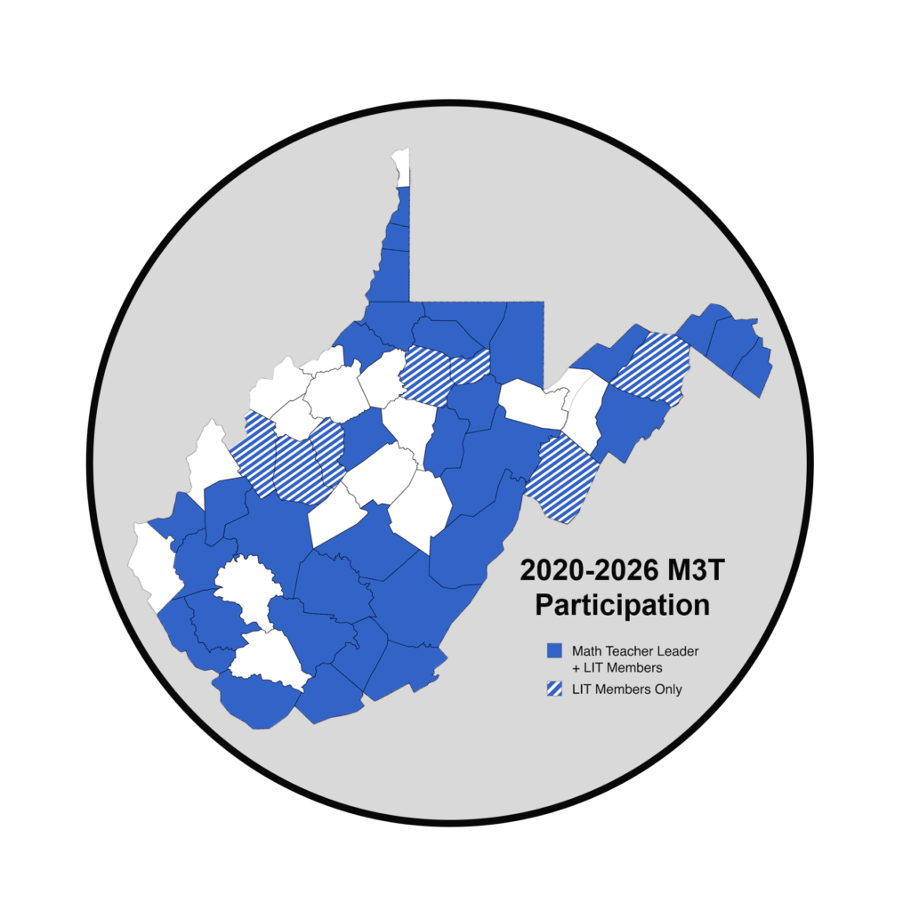 Mountaineer Mathematics Master Teachers (M3T) is collaborative, teacher-led improvement of mathematics teaching and learning across West Virginia. M3T supports and empowers experienced and exemplary secondary mathematics teachers as math teacher leaders (MTL) to learn and use the tools of improvement science and networked improvement communities (NICs). MTLs recruit and lead Local Improvement Teams (LITs) and Grade-level Improvement Teams (GrITs) of teachers who join together across district lines to improve mathematics teaching and learning across the state. Since 2020, more than 300 teachers from 37 districts, led by 42 Math Teacher Leaders, have improved math teaching and learning for over 30,000 students in grades 6 – 12.