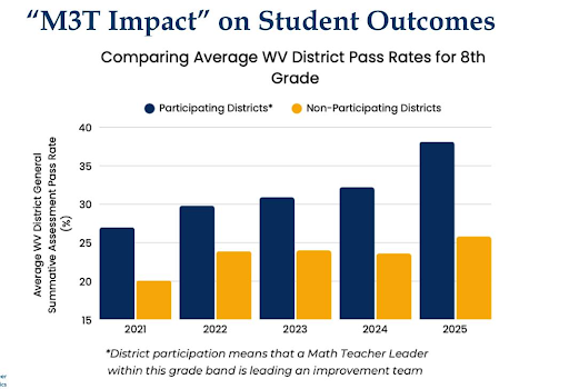 A recent report from theEducation Recovery Scorecard highlighted West Virginia as ranking 6th nationally in math growth from 2022-2024. M3T districts are responsible for  significant positive impact on 4 of the 7 tested grades.