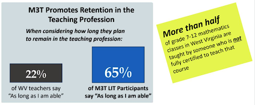 • M3T has improved student math outcomes in participating West Virginia school districts at a faster rate than non-participating districts.